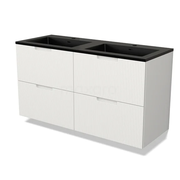 Modulo Bathroom furniture with sink | 120 cm Matte white Line front Quartz 4 drawers