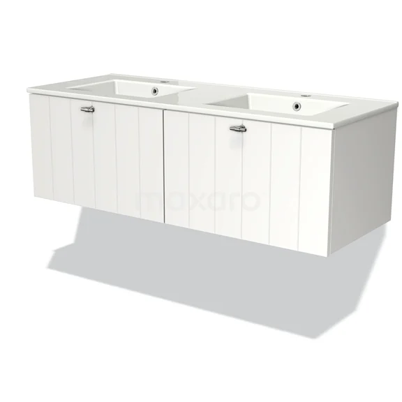 Modulo Bathroom furniture with sink | 120 cm Matte white Slat front Ceramic 2 Side-by-side drawers