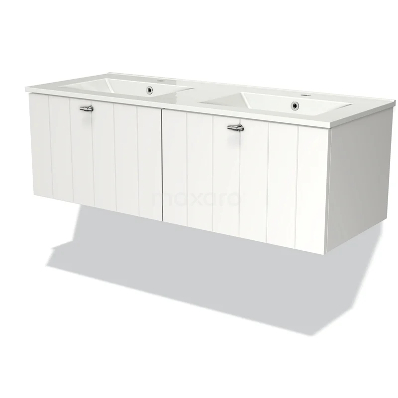 Modulo Bathroom furniture with sink | 120 cm Matte white Slat front Ceramic 2 Side-by-side drawers