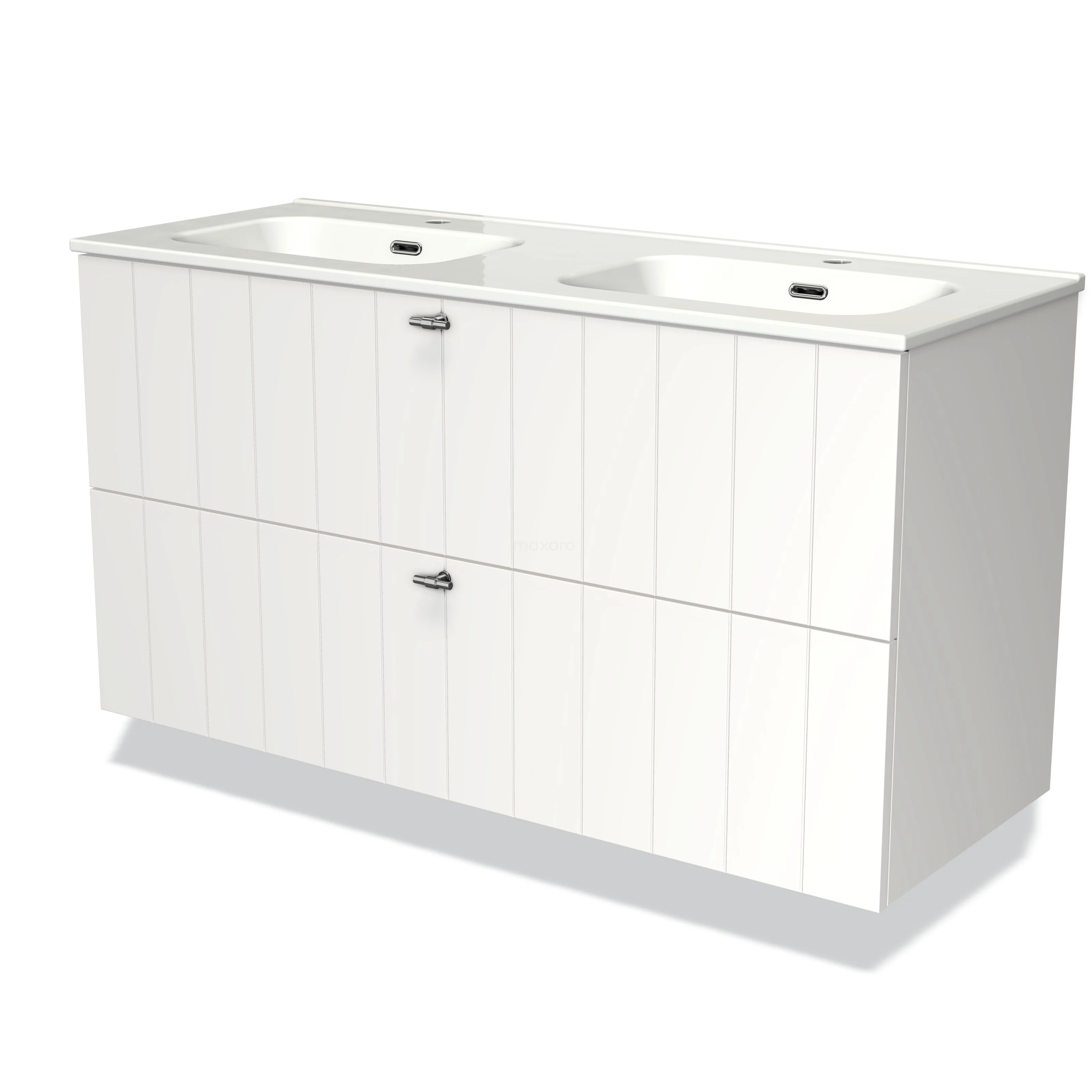 Modulo Bathroom furniture with sink | 120 cm Matte white Slat front Ceramic 2 Stacked drawers