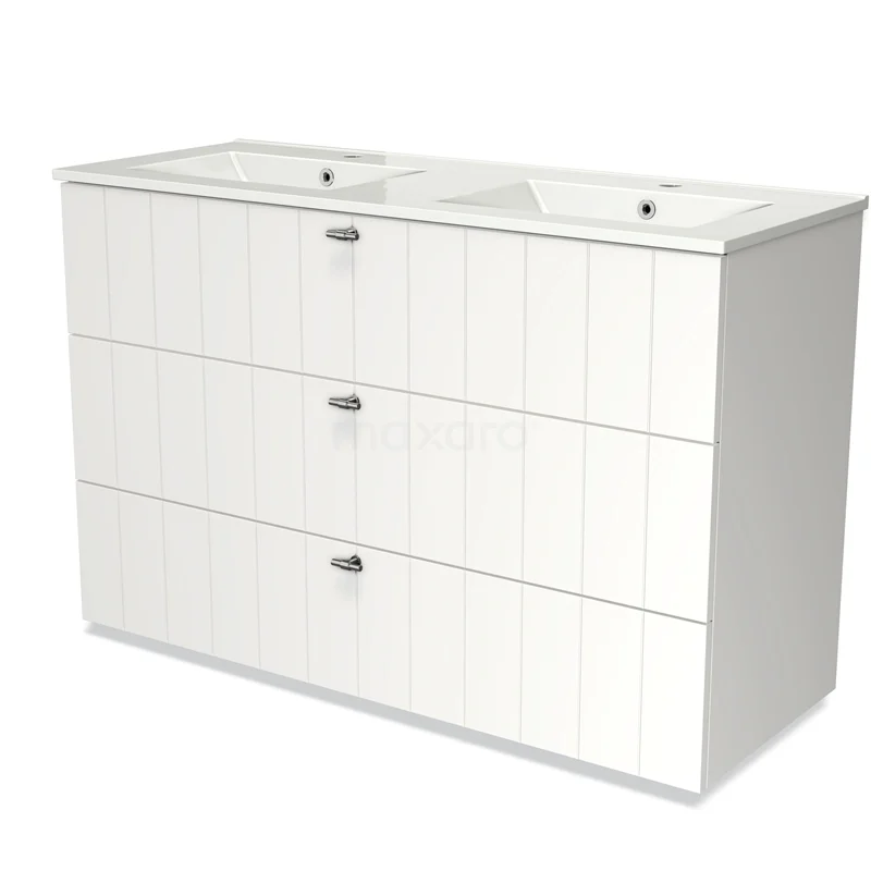 Modulo Bathroom furniture with sink | 120 cm Matte white Slat front Ceramic 3 drawers