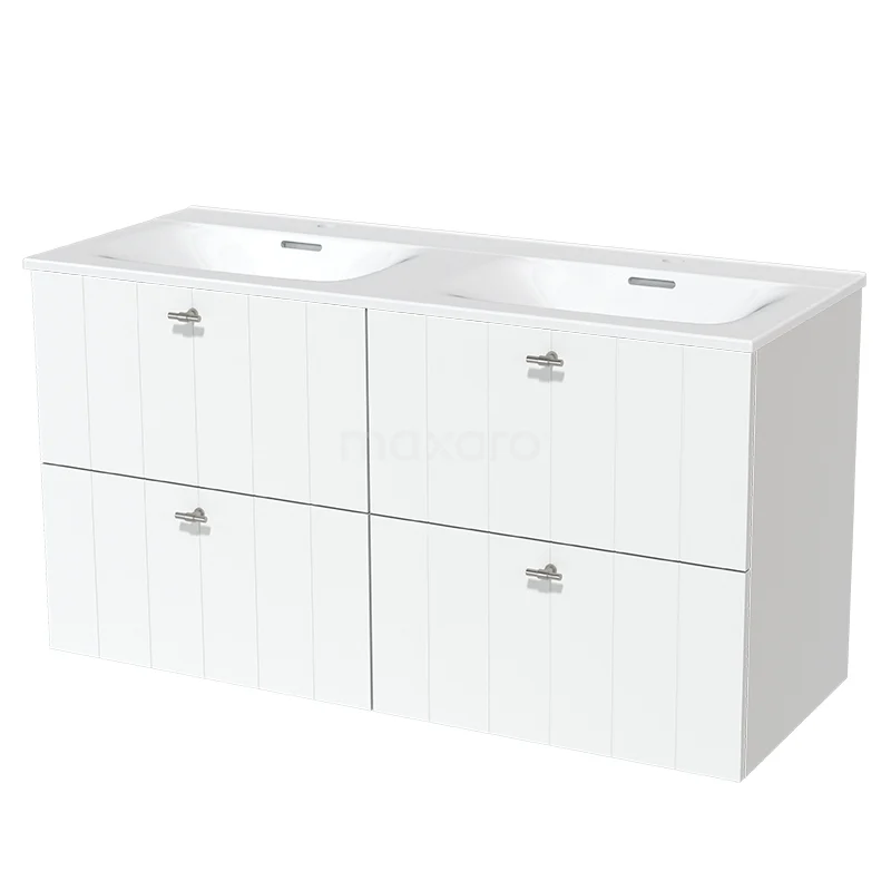 Modulo Bathroom furniture with sink | 120 cm Matte white Slat front Ceramic 4 drawers