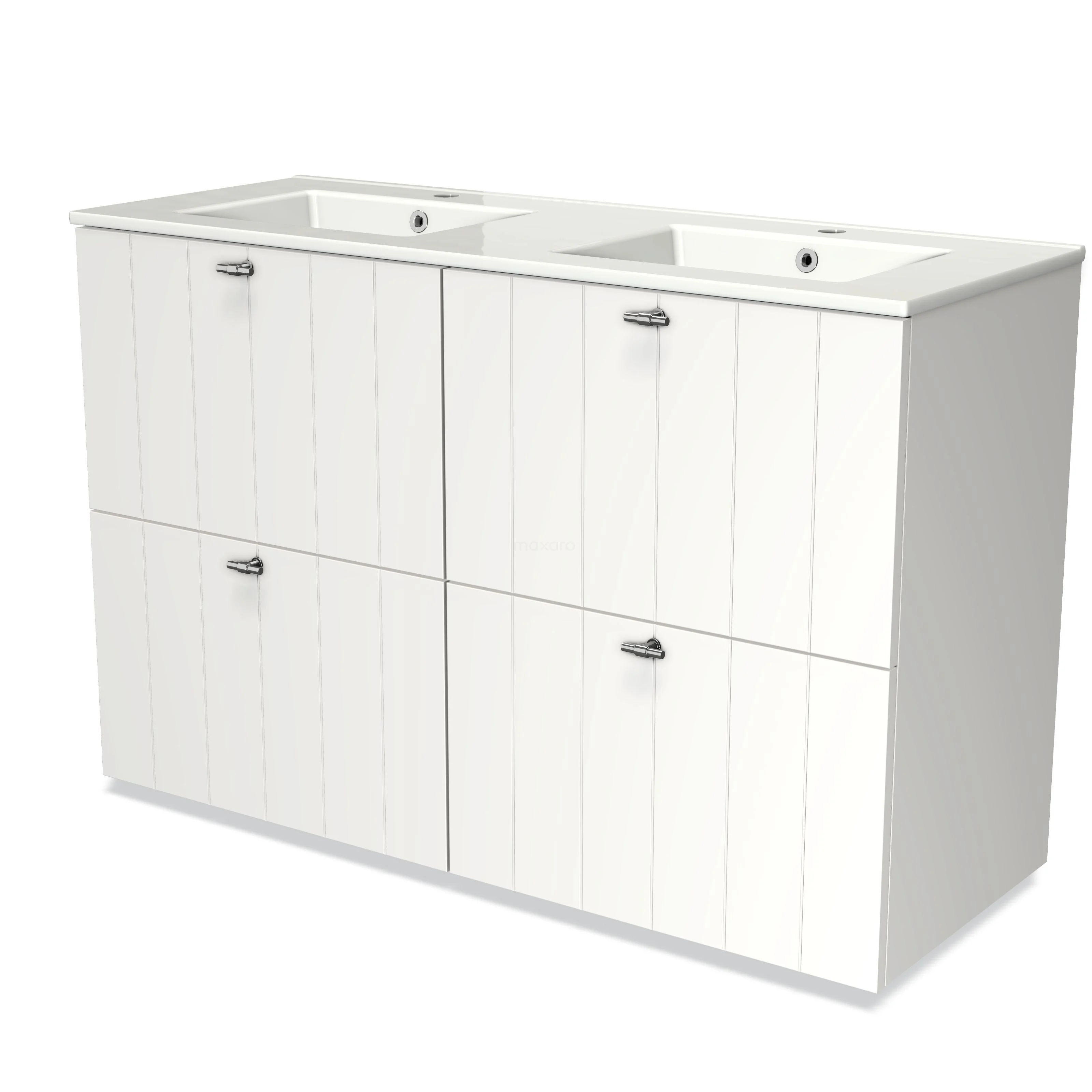 Modulo Bathroom furniture with sink | 120 cm Matte white Slat front Ceramic 4 high drawers
