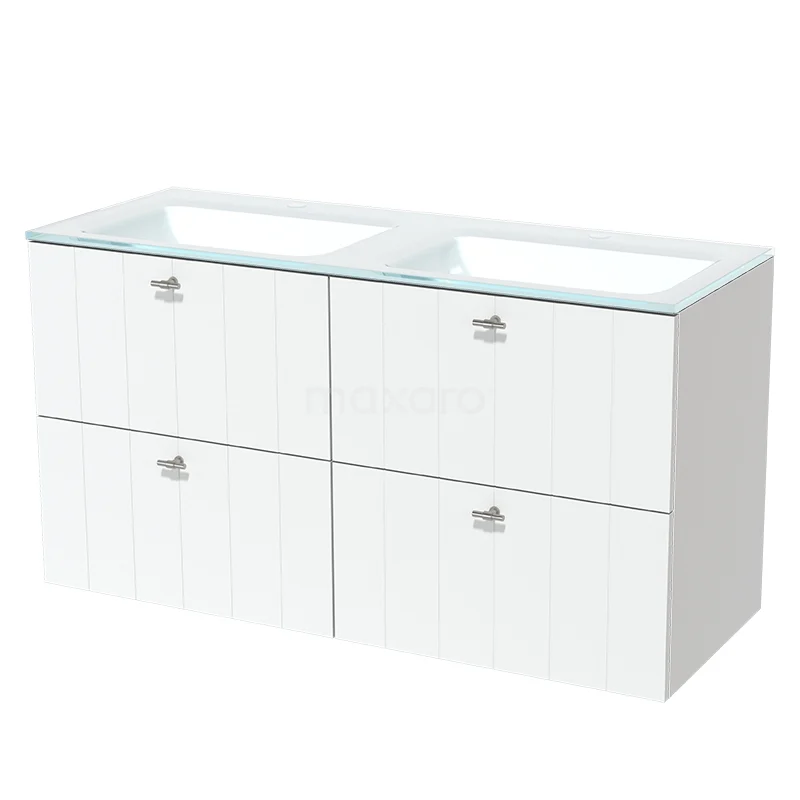 Modulo Bathroom furniture with sink | 120 cm Matte white Slat front Glass 4 drawers