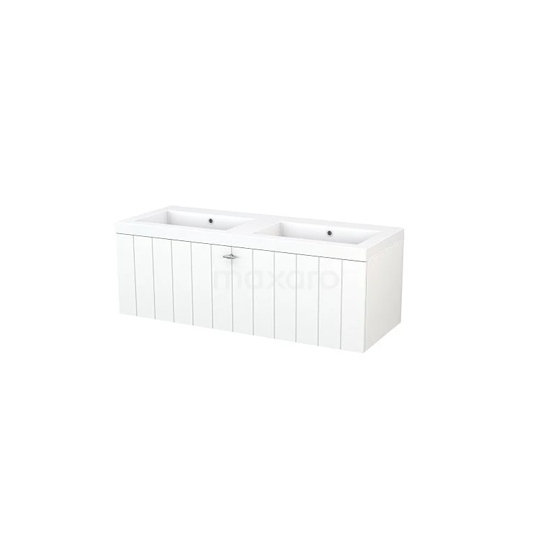 Modulo+ Bathroom furniture with sink | 120 cm Matte white Slat front Mineral marble 1 drawer