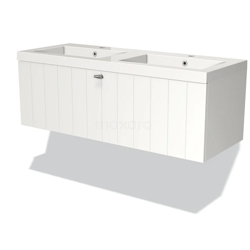Modulo Bathroom furniture with sink | 120 cm Matte white Slat front Mineral marble 1 drawer