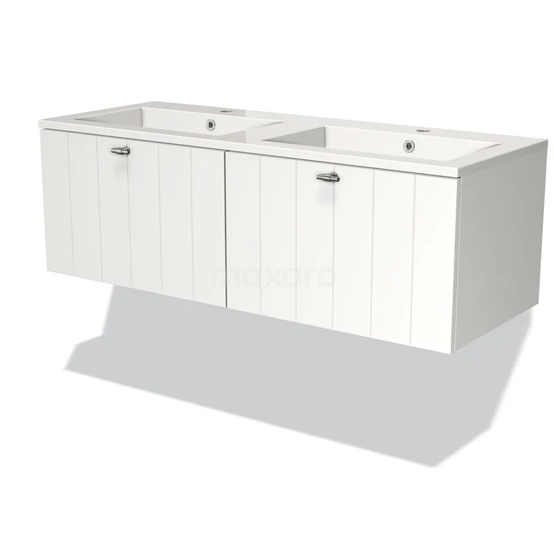 Modulo Bathroom furniture with sink | 120 cm Matte white Slat front Mineral marble 2 Side-by-side drawers