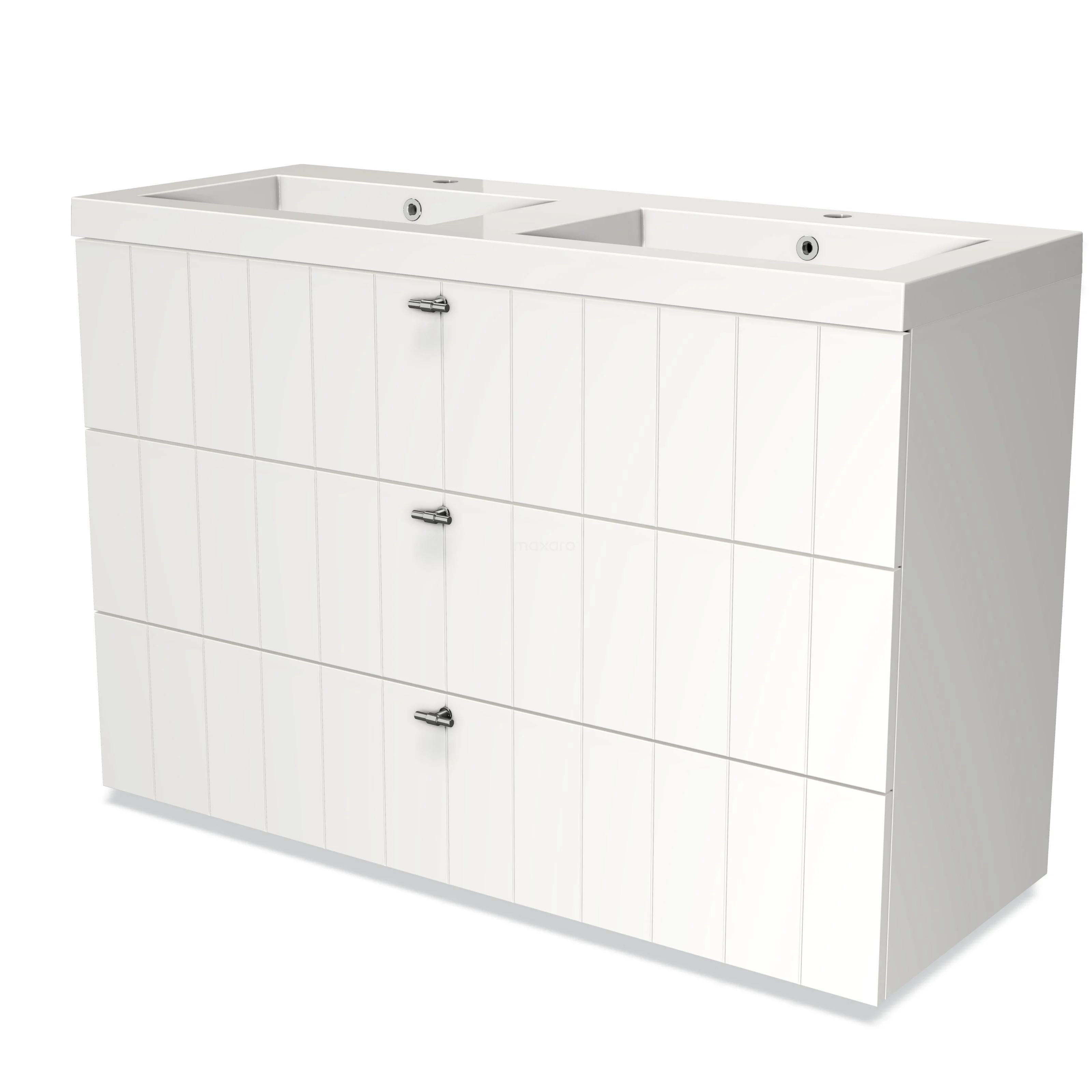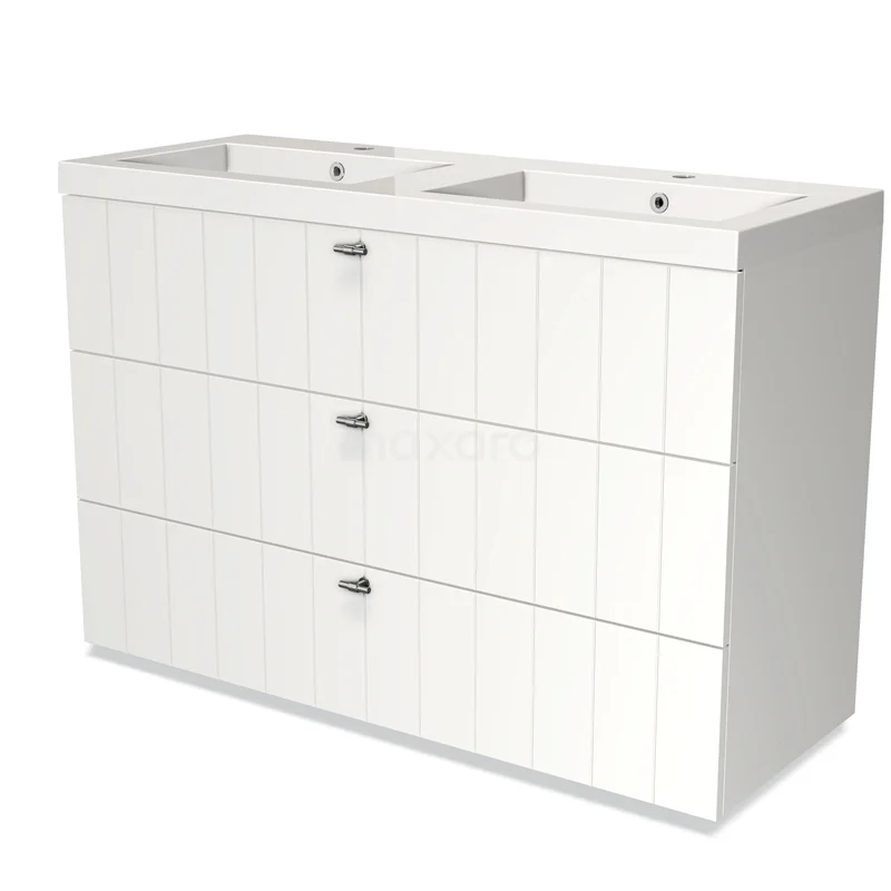 Modulo Bathroom furniture with sink | 120 cm Matte white Slat front Mineral marble 3 drawers