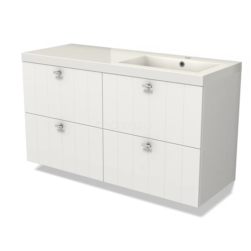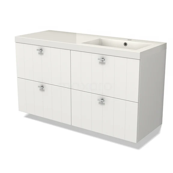 Modulo Bathroom furniture with sink | 120 cm Matte white Slat front Mineral marble 4 drawers