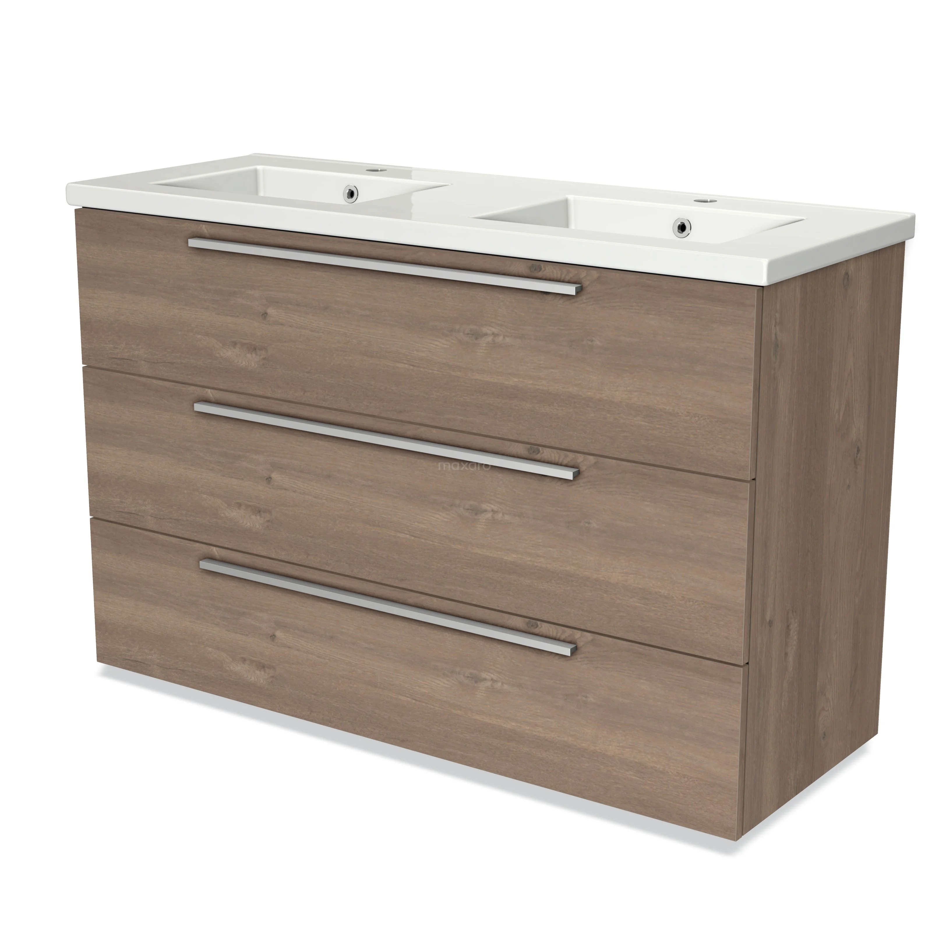 Modulo Bathroom furniture with sink | 120 cm Mid brown oak Flat front Ceramic 3 drawers