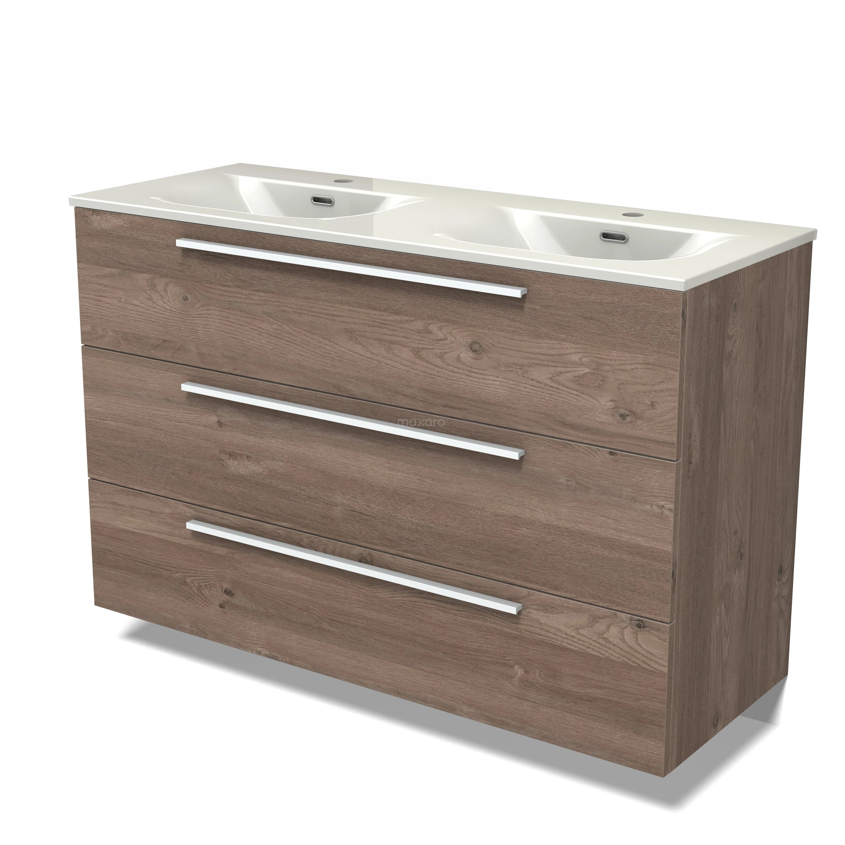 Modulo Bathroom furniture with sink | 120 cm Mid brown oak Flat front Ceramic 3 drawers