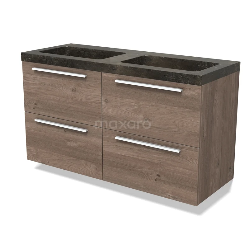 Modulo Bathroom furniture with sink | 120 cm Mid brown oak Flat front Natural stone 4 drawers