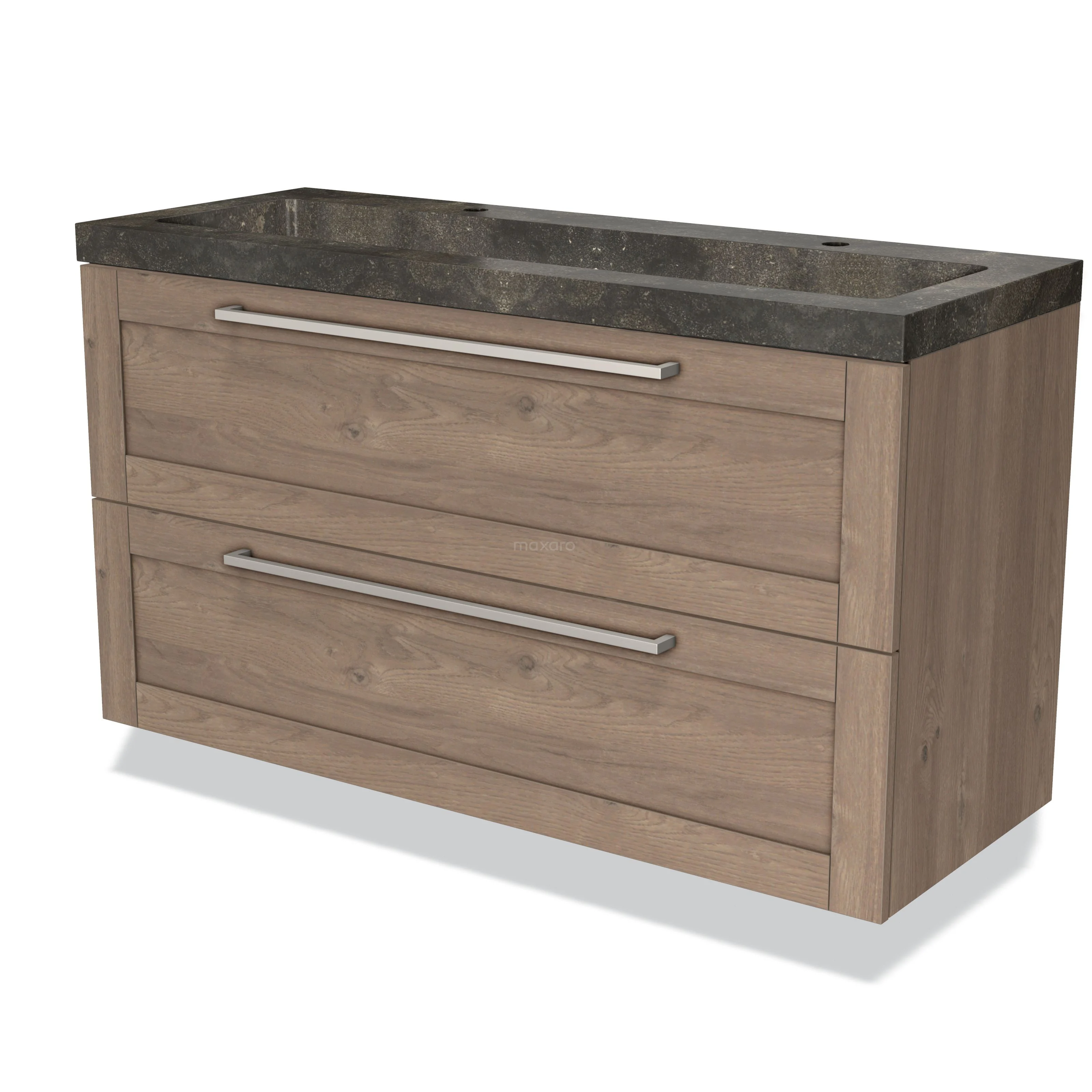 Modulo Bathroom furniture with sink | 120 cm Mid brown oak Frame front Natural stone 2 Stacked drawers