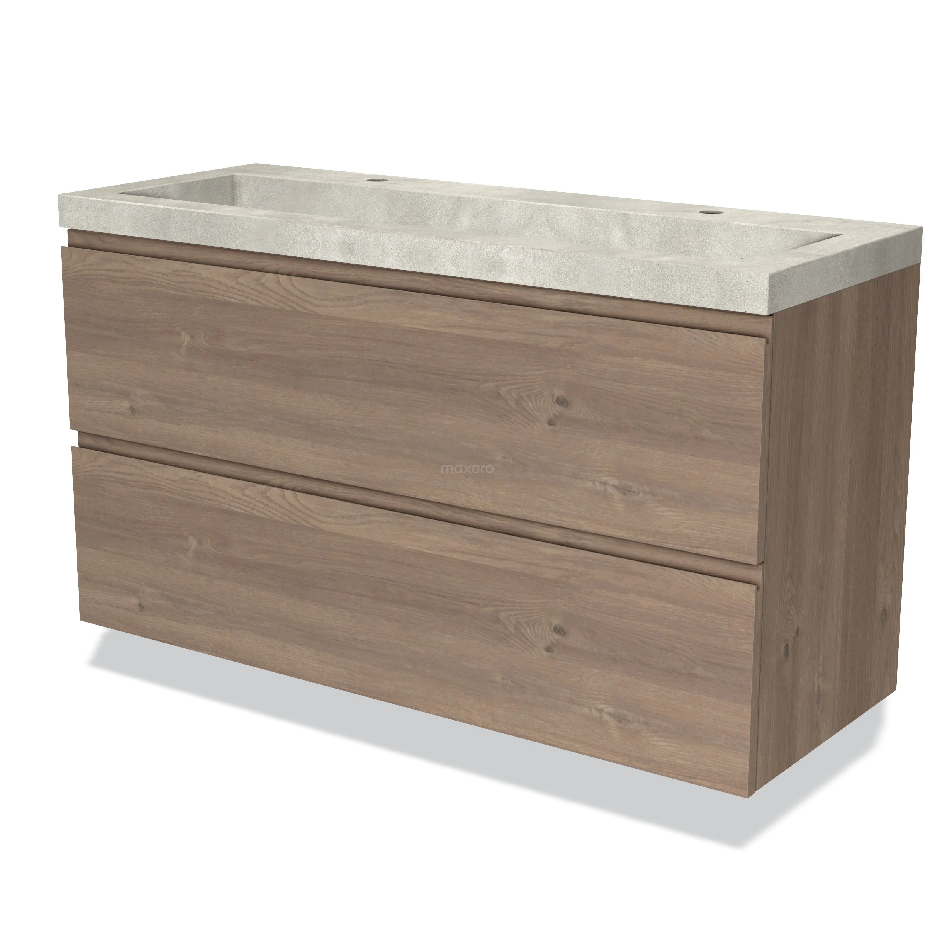 Modulo Bathroom furniture with sink | 120 cm Mid brown oak Handle-less front Concrete 2 Stacked drawers