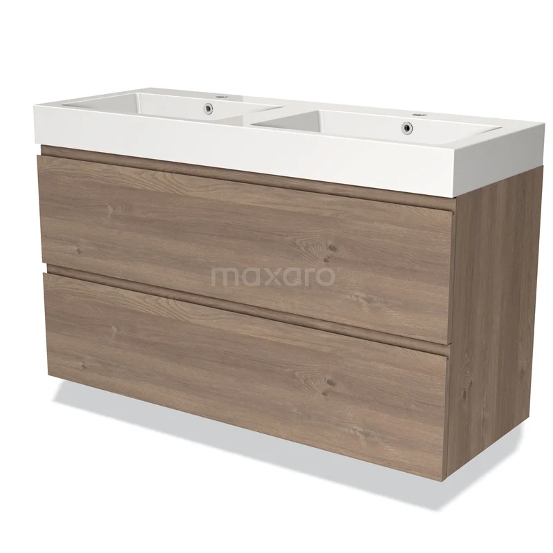 Modulo Bathroom furniture with sink | 120 cm Mid brown oak Handle-less front Mineral marble 2 Stacked drawers