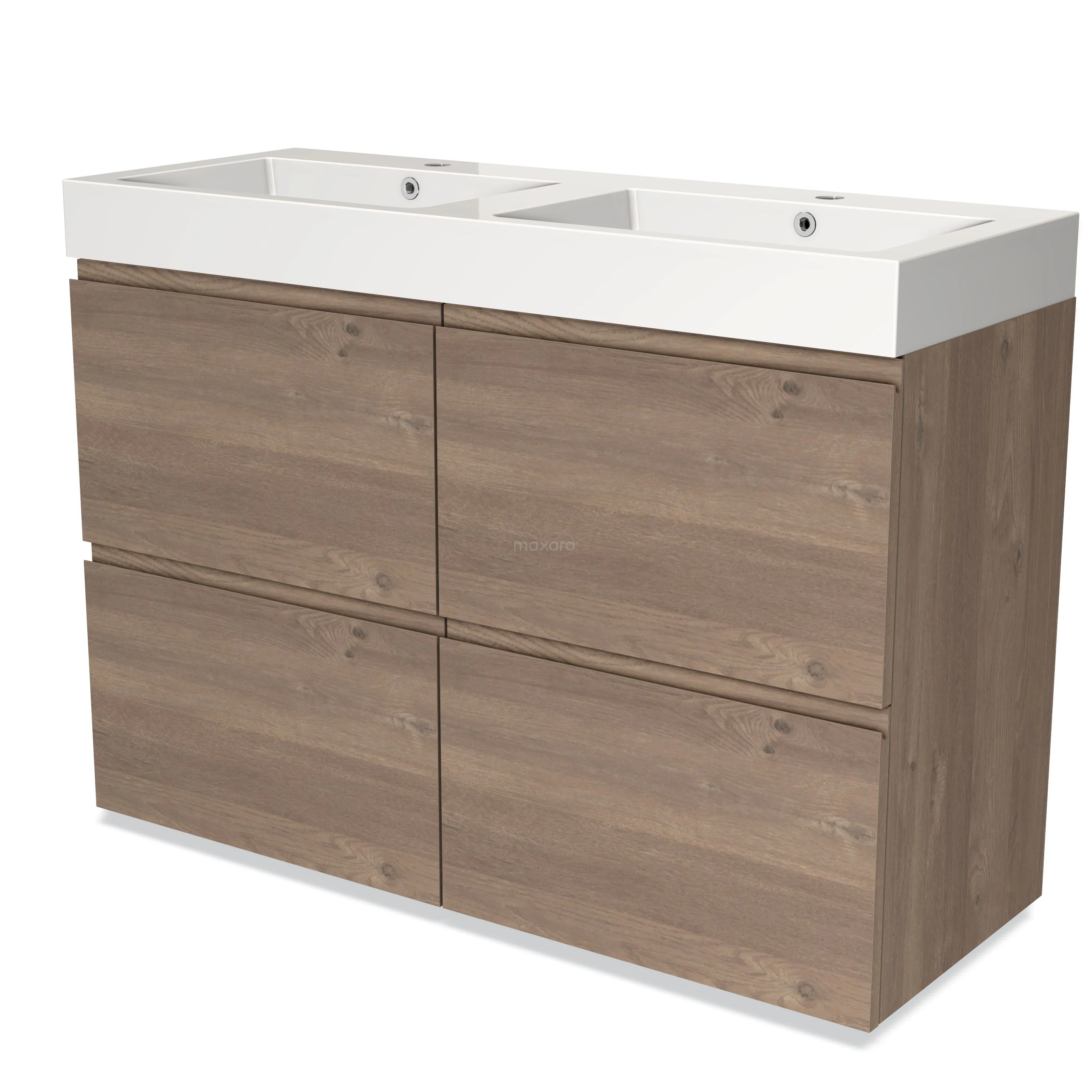 Stylish design The stylish design makes this bathroom unit the eye-catcher of your bathroom. The base cabinet features a handleless front and has a mid brown oak finish. This beautiful oak look creates a warm atmosphere in your bathroom interior. In addition, the handleless front provides a sleek touch.
