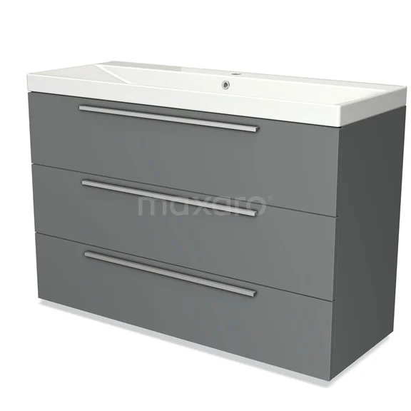 Modulo Bathroom furniture with sink | 120 cm Mid grey Flat front Ceramic 3 drawers