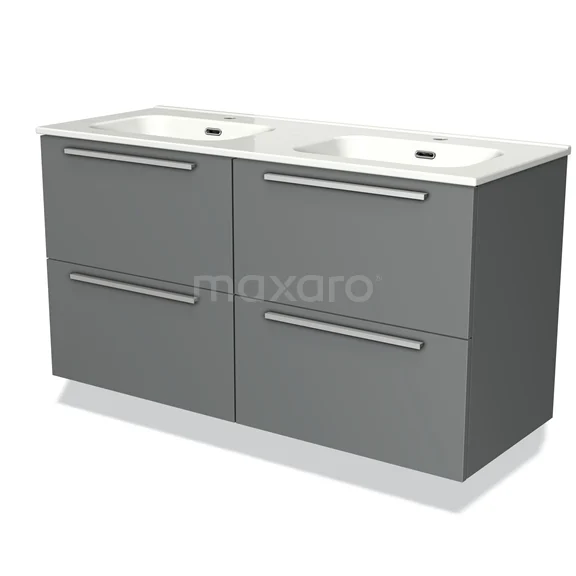 Modulo Bathroom furniture with sink | 120 cm Mid grey Flat front Ceramic 4 drawers