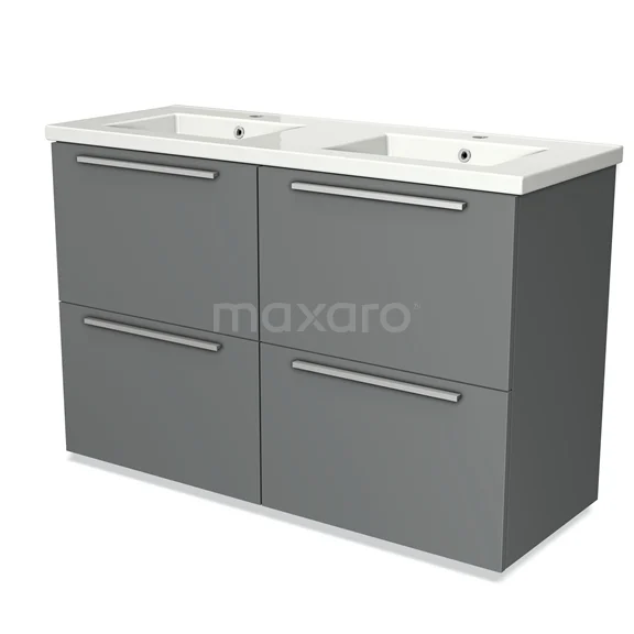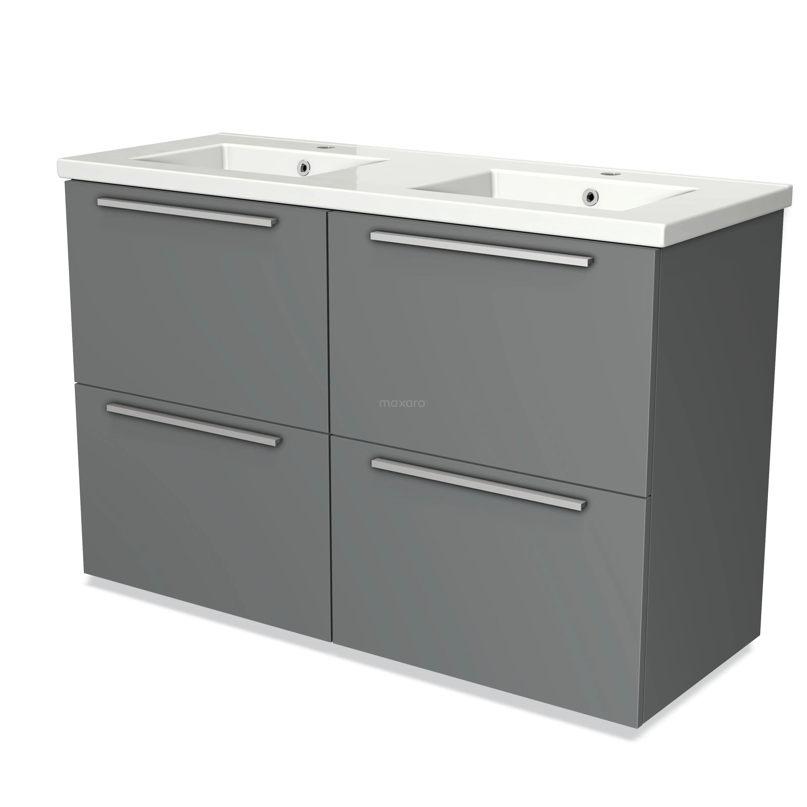 Modulo Bathroom furniture with sink | 120 cm Mid grey Flat front Ceramic 4 high drawers