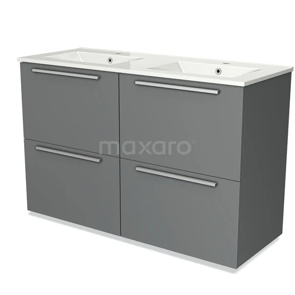 Modulo Bathroom furniture with sink | 120 cm Mid grey Flat front Ceramic 4 high drawers