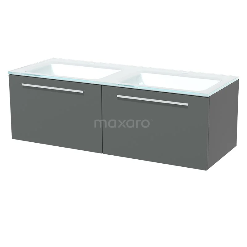 Modulo Bathroom furniture with sink | 120 cm Mid grey Flat front Glass 2 Side-by-side drawers