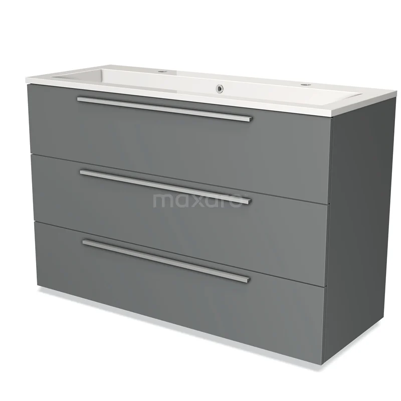 Modulo Bathroom furniture with sink | 120 cm Mid grey Flat front Mineral marble 3 drawers