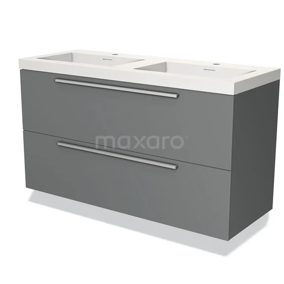 Modulo Bathroom furniture with sink | 120 cm Mid grey Flat front Solid surface 2 Stacked drawers