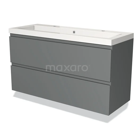 Modulo Bathroom furniture with sink | 120 cm Mid grey Handle-less front Mineral marble 2 Stacked drawers