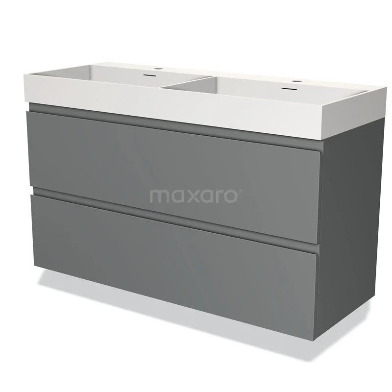 Modulo Bathroom furniture with sink | 120 cm Mid grey Handle-less front Solid surface 2 Stacked drawers