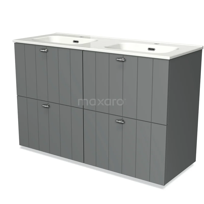 Modulo Bathroom furniture with sink | 120 cm Mid grey Slat front Ceramic 4 high drawers