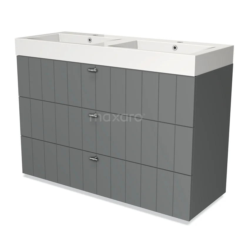 Modulo Bathroom furniture with sink | 120 cm Mid grey Slat front Mineral marble 3 drawers