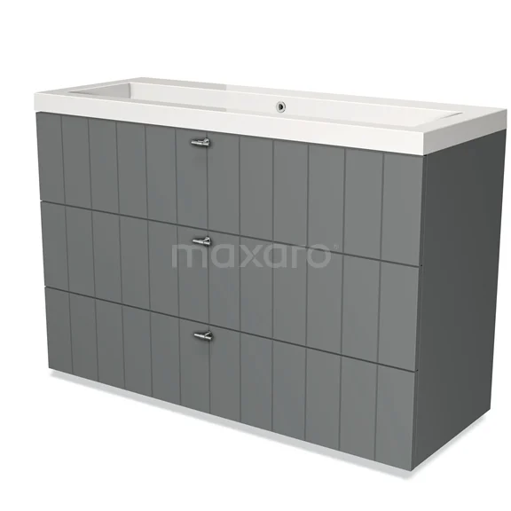 Modulo Bathroom furniture with sink | 120 cm Mid grey Slat front Mineral marble 3 drawers