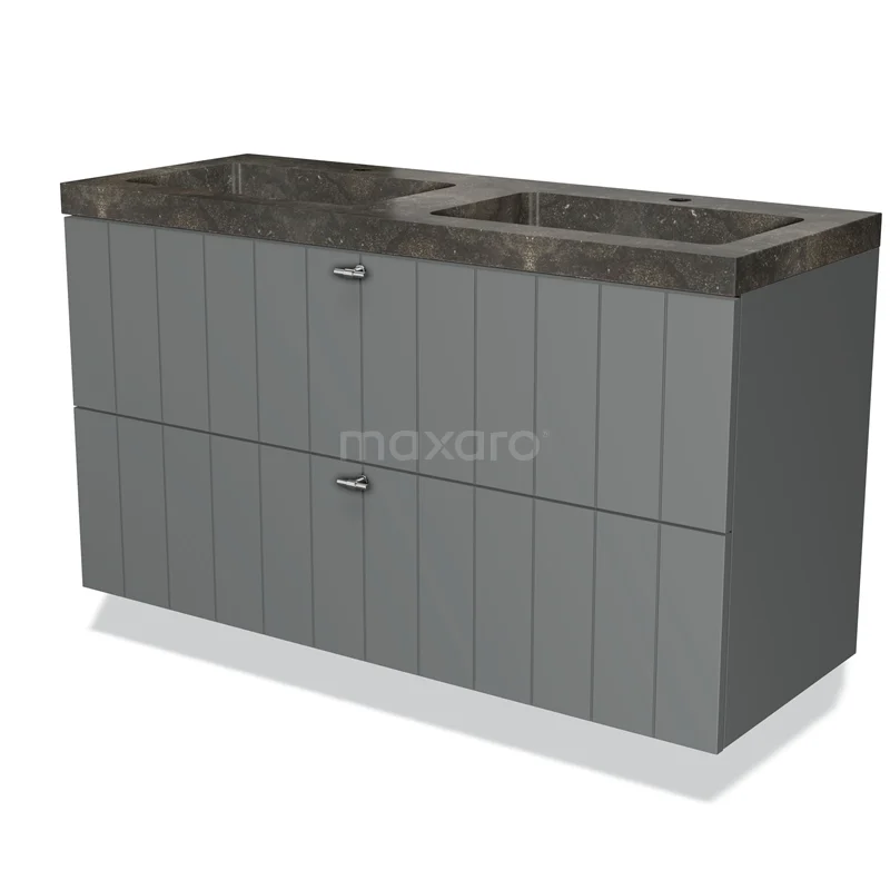 Modulo Bathroom furniture with sink | 120 cm Mid grey Slat front Natural stone 2 Stacked drawers
