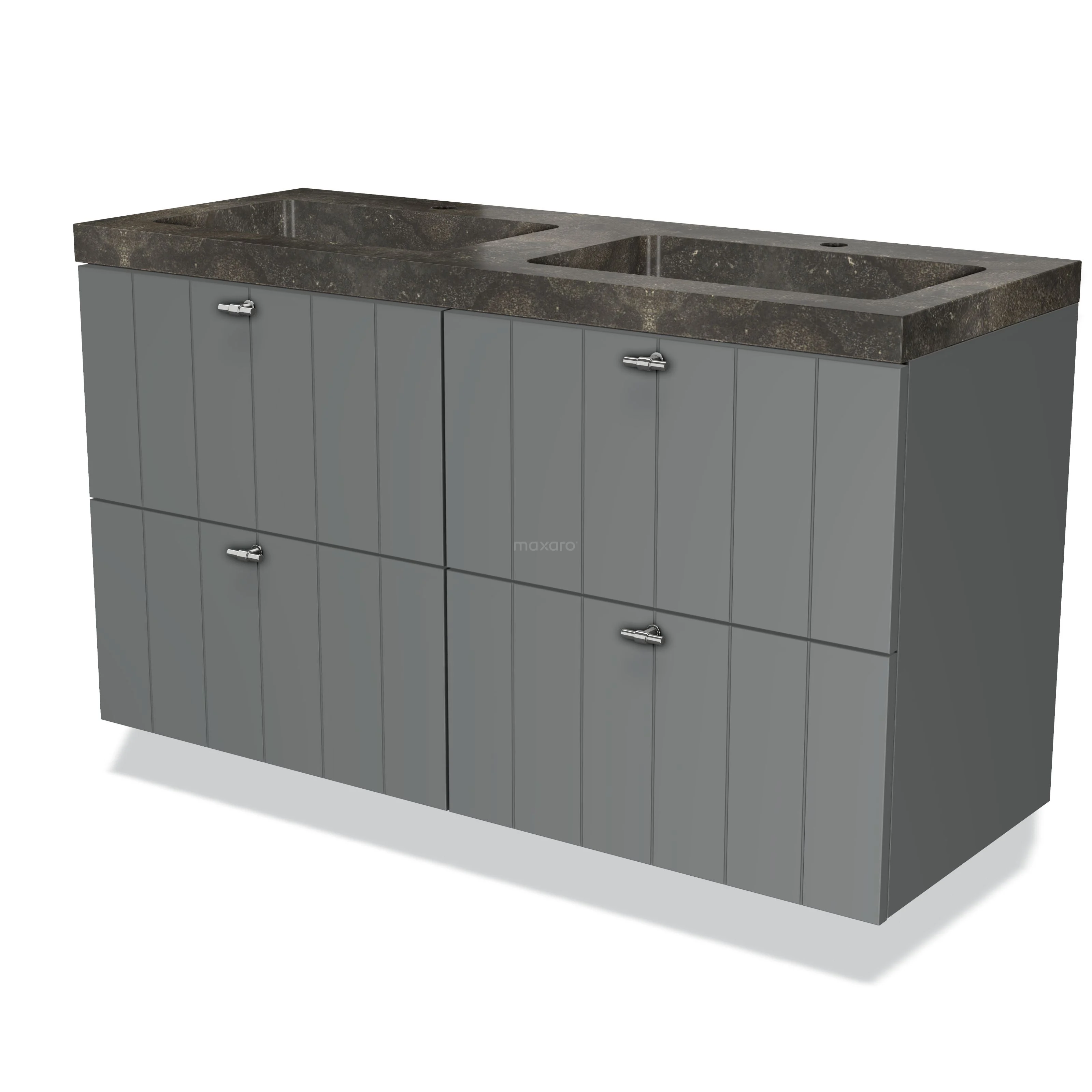 Modulo Bathroom furniture with sink | 120 cm Mid grey Slat front Natural stone 4 drawers