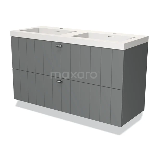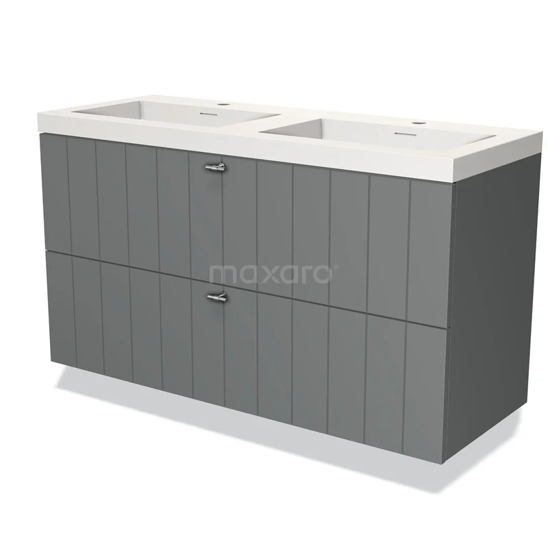 Modulo Bathroom furniture with sink | 120 cm Mid grey Slat front Solid surface 2 Stacked drawers