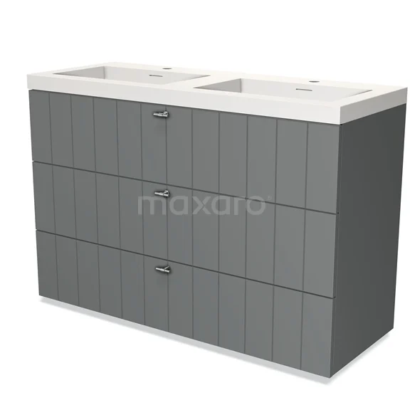 Modulo Bathroom furniture with sink | 120 cm Mid grey Slat front Solid surface 3 drawers