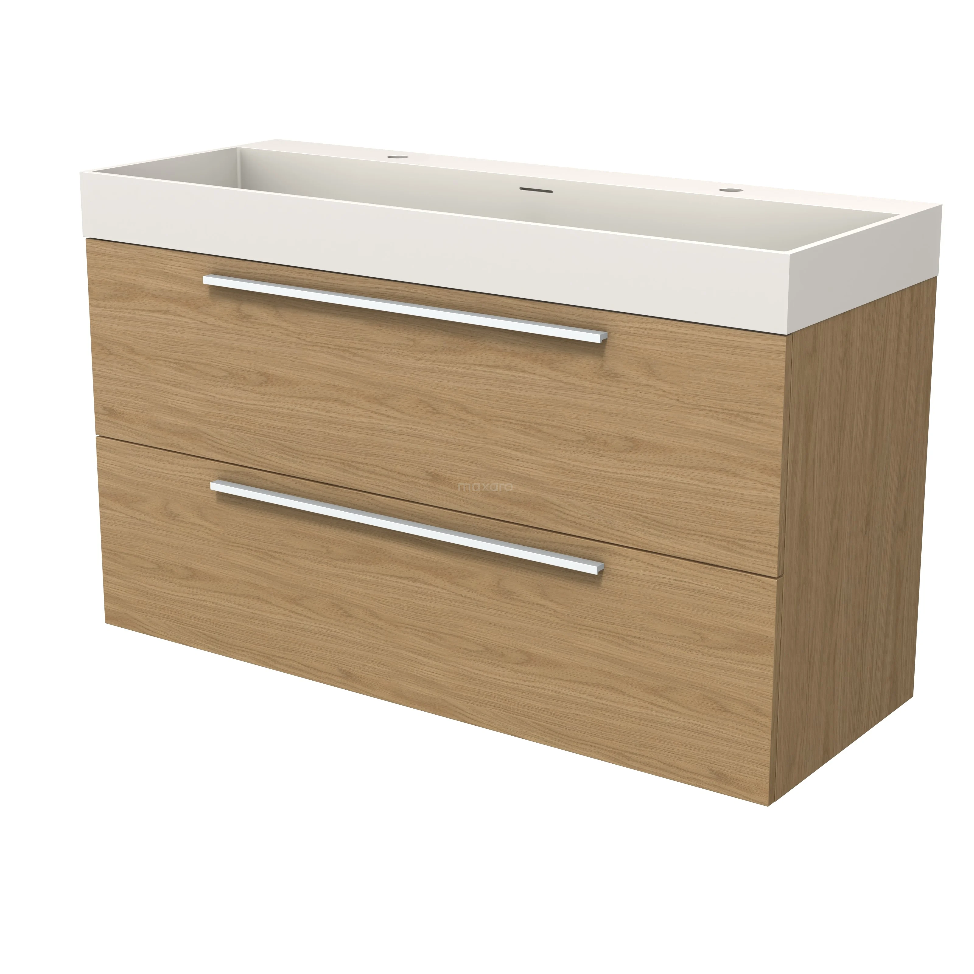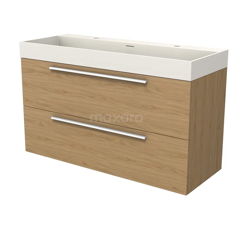 Modulo Bathroom furniture with sink | 120 cm Natural veneer Flat front Solid surface 2 Stacked drawers