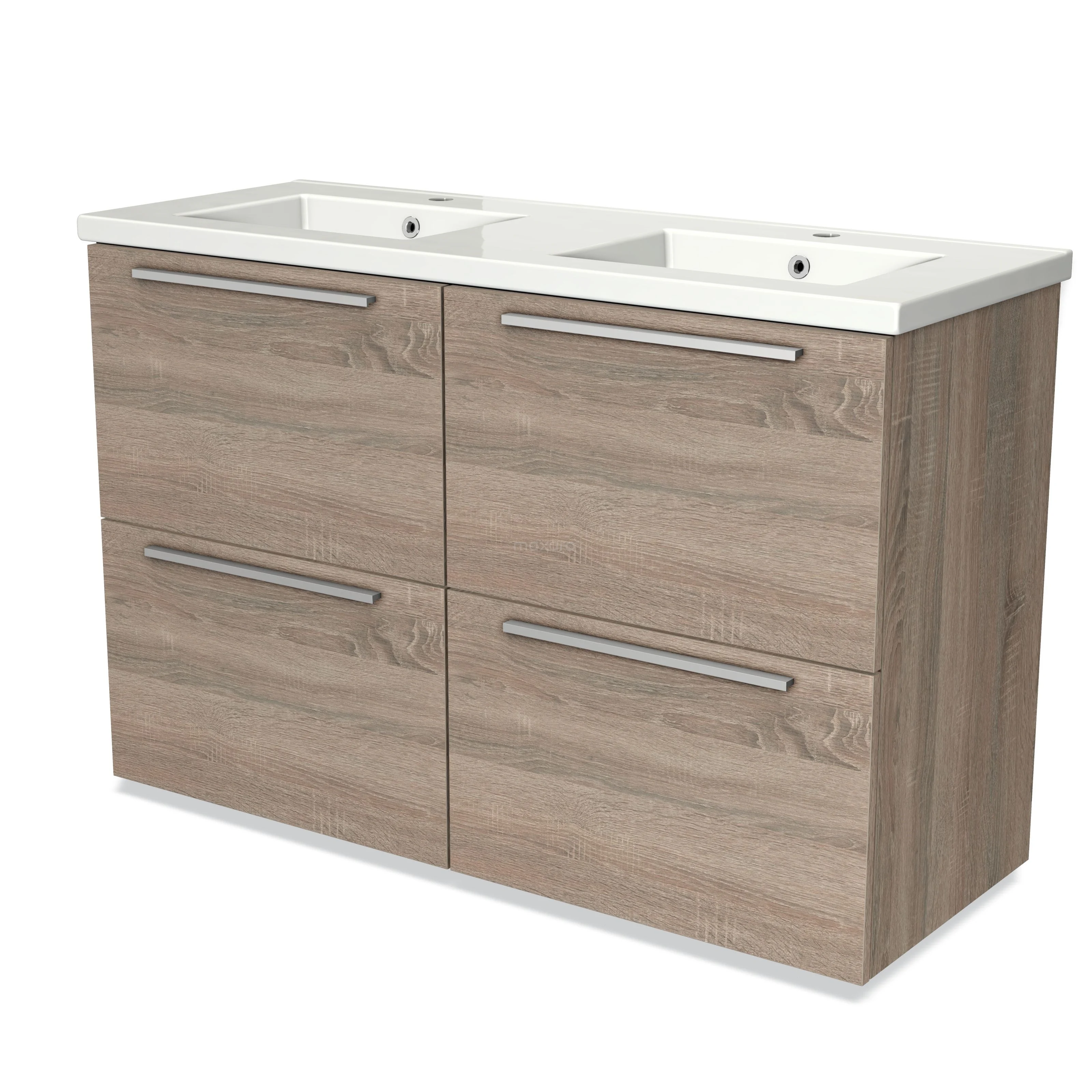 Modulo Bathroom furniture with sink | 120 cm Oak Flat front Ceramic 4 high drawers