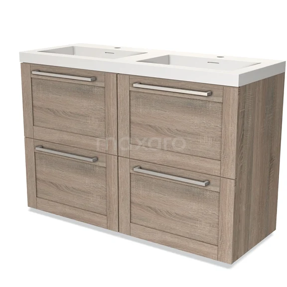 Modulo Bathroom furniture with sink | 120 cm Oak Frame front Solid surface 4 high drawers