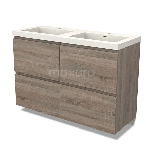 Modulo Bathroom furniture with sink | 120 cm Oak Handle-less front Solid surface 4 high drawers
