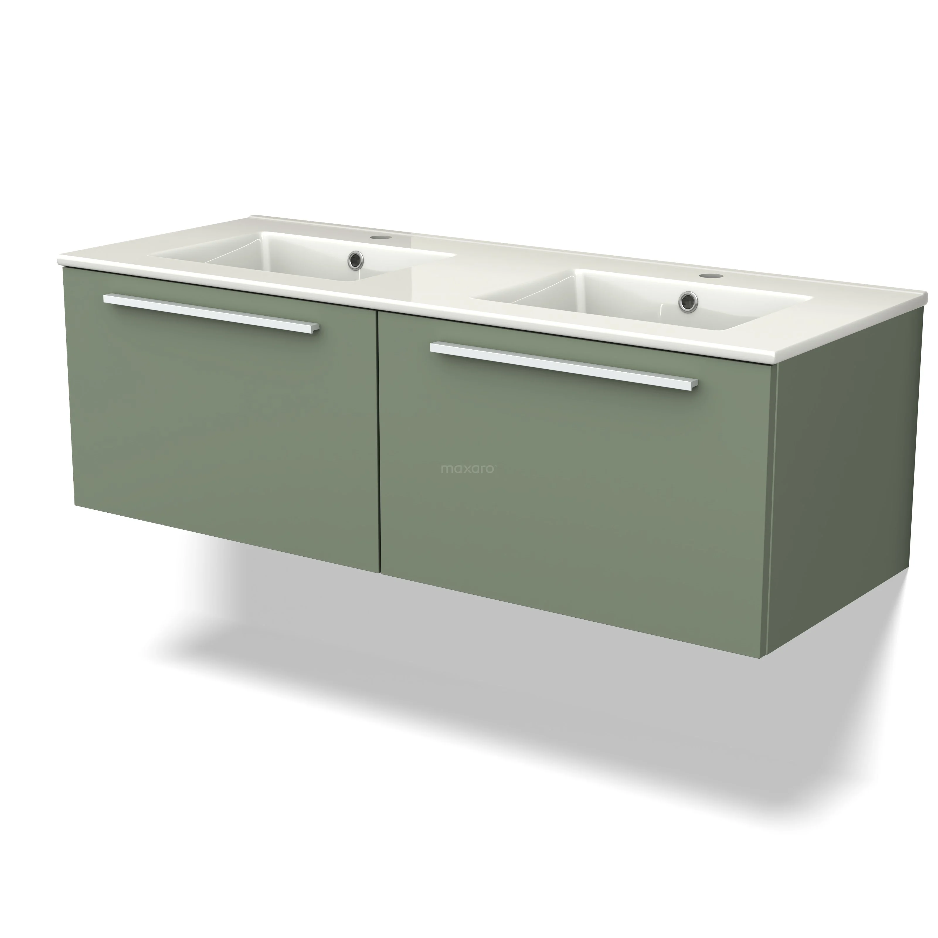 Modulo Bathroom furniture with sink | 120 cm Sage green Flat front Ceramic 2 Side-by-side drawers