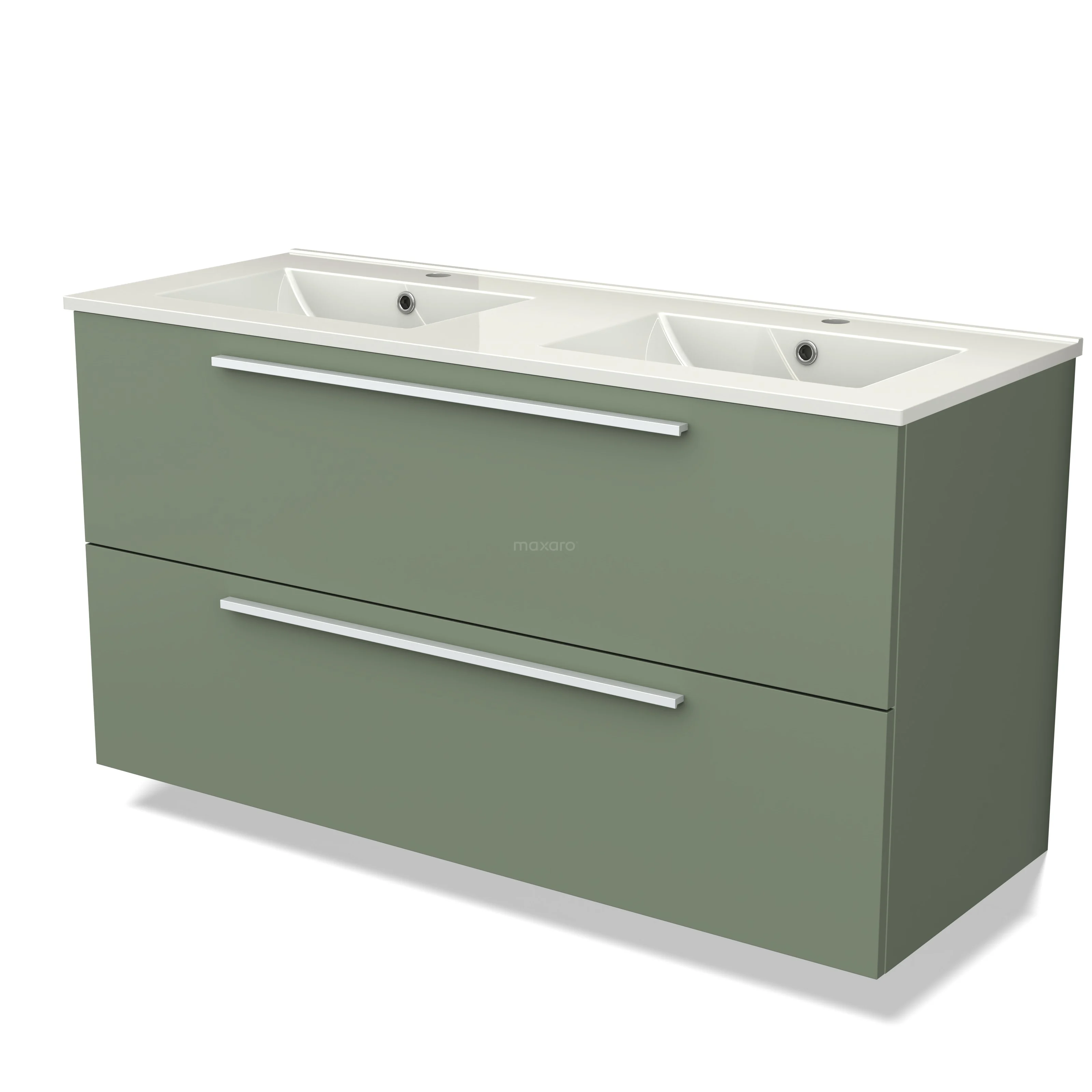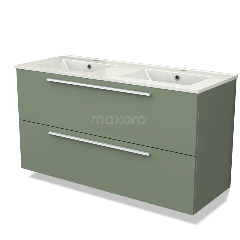 Modulo Bathroom furniture with sink | 120 cm Sage green Flat front Ceramic 2 Stacked drawers