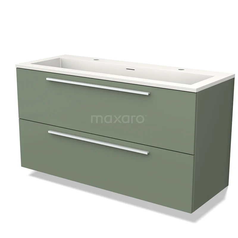 Modulo Bathroom furniture with sink | 120 cm Sage green Flat front Solid surface 2 Stacked drawers