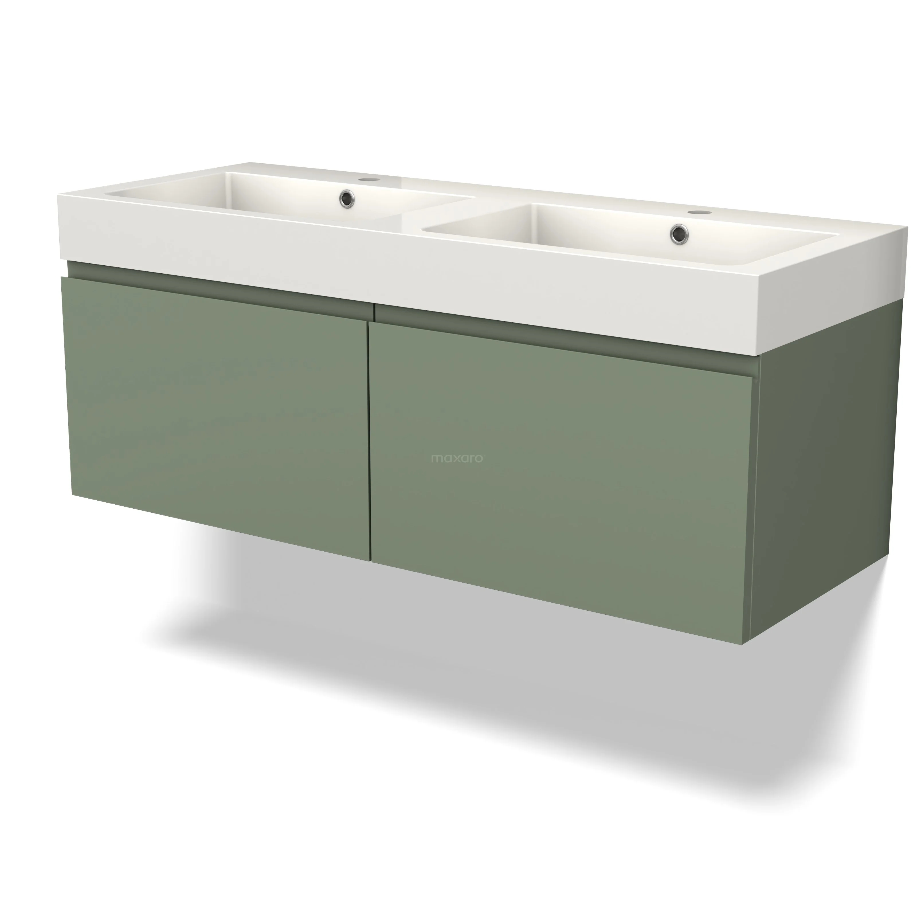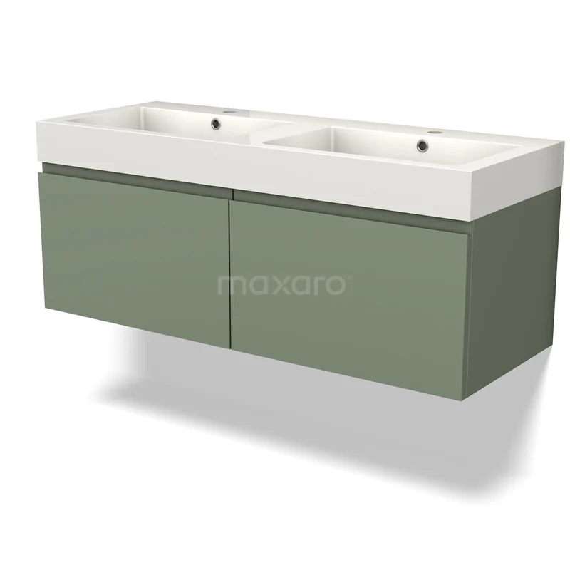 Modulo Bathroom furniture with sink | 120 cm Sage green Handle-less front Mineral marble 2 Side-by-side drawers