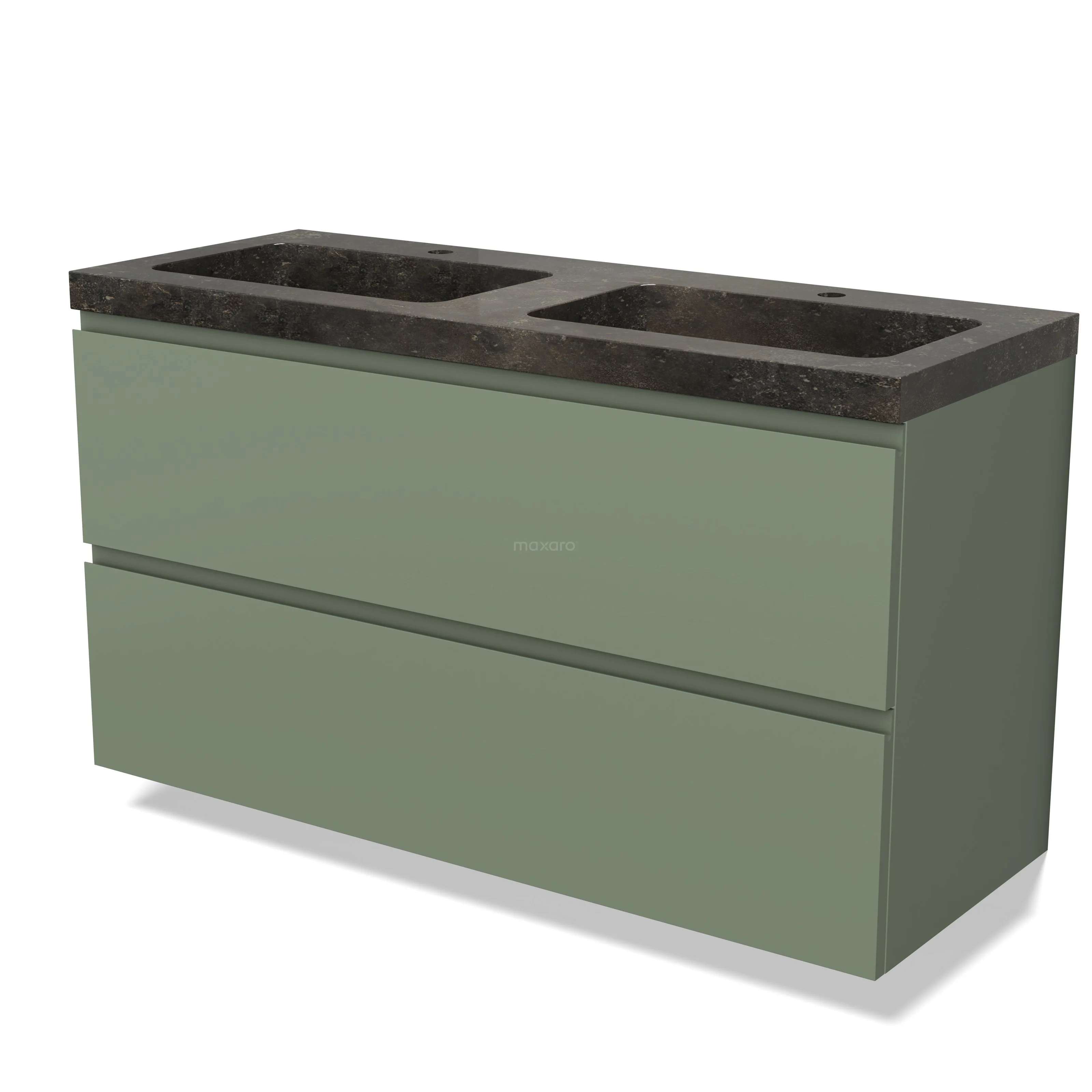 Modulo Bathroom furniture with sink | 120 cm Sage green Handle-less front Natural stone 2 Stacked drawers