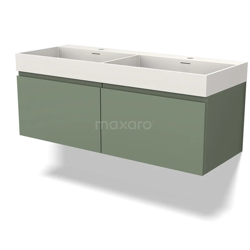 Modulo Bathroom furniture with sink | 120 cm Sage green Handle-less front Solid surface 2 Side-by-side drawers