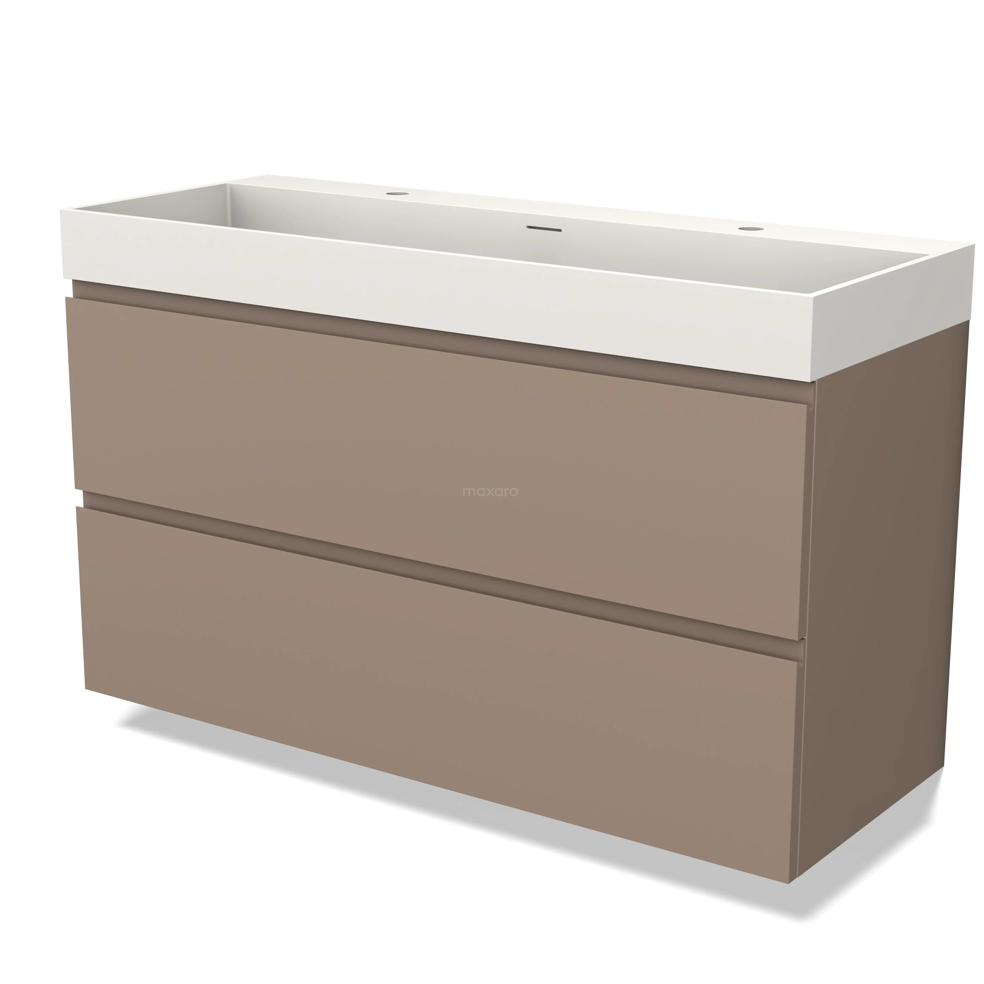 Modulo Bathroom furniture with sink | 120 cm Taupe Handle-less front Solid surface 2 Stacked drawers