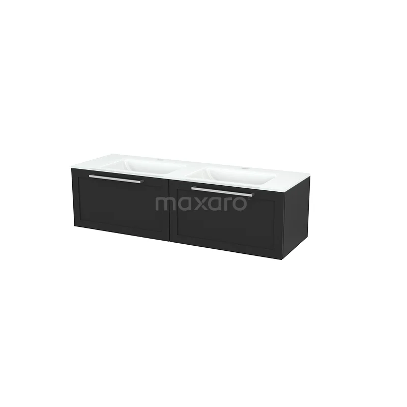 Modulo+ Bathroom furniture with sink | 140 cm Carbon Frame front Glass 2 Side-by-side drawers