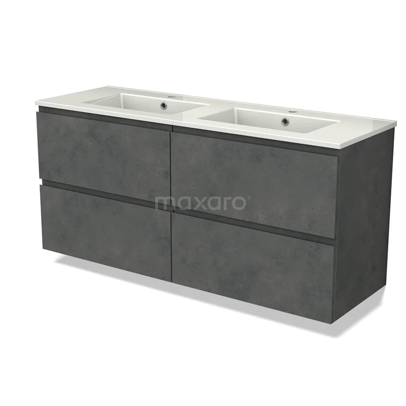 Modulo Bathroom furniture with sink | 140 cm Dark grey concrete Handle-less front Ceramic 4 drawers