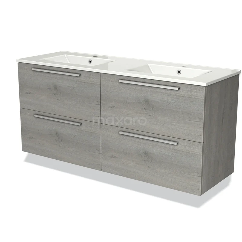 Modulo Bathroom furniture with sink | 140 cm Grey oak Flat front Ceramic 4 drawers